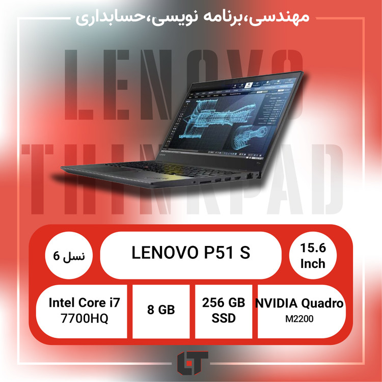 لپتاپ Lenovo ThinkPad P51s که در سال ۲۰۱۷ معرفی شد، یک ورکاستیشن سبک و حرفهای با نمایشگر ۱۵.۶ اینچی، کیبورد ارگونومیک تینکپد و بدنه مقاوم است. این مدل با پردازندههای نسل ششم/هفتم اینتل، گرافیک حرفهای NVIDIA Quadro (در برخی کانفیگها)، عمر باتری مناسب و درگاههای کامل از جمله USB-C/Thunderbolt، برای کارهای مهندسی و تحلیلی سبک تا متوسط، نرمافزارهای CAD دوبعدی/سهبعدی سبک، برنامهنویسی و امور اداری سنگین انتخابی مطمئن و قابلاتکاست؛ ضمن اینکه امکان ارتقای حافظه و ذخیرهسازی ارزش خرید آن را بالاتر میبرد.