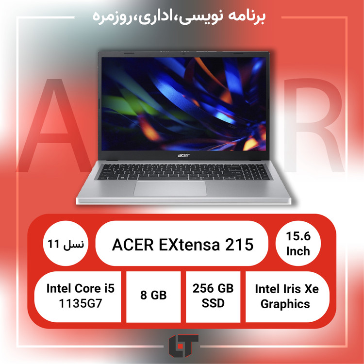 متاسفانه این کالا در حال حاضر موجود نیست. میتوانید از طریق لیست بالای صفحه، از محصولات مشابه این کالا دیدن نمایید.لپتاپ Acer Extensa 215 با پردازندهی قدرتمند نسل یازدهم Intel Core i5-1135G7، همراه با ۸ گیگابایت رم DDR4 و حافظه SSD پرسرعت ۲۵۶ گیگابایتی، گزینهای ایدهآل برای کاربران اداری، دانشجویان و برنامهنویسان است. نمایشگر ۱۵.۶ اینچی Full HD کیفیت تصویر شفاف و مناسبی را برای کارهای روزمره، آموزش آنلاین و تماشای فیلم ارائه میدهد. طراحی باریک و وزن حدود ۱.۹ کیلوگرم باعث شده این لپتاپ برای حملونقل روزانه انتخابی راحت و کاربردی باشد. همچنین قابلیت ارتقاء رم و حافظه ذخیرهسازی، آیندهنگری و انعطاف بیشتری به کاربران میدهد.